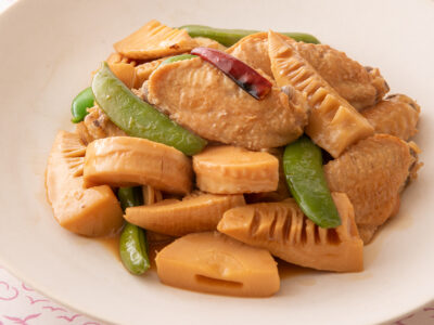ごま油と香味野菜で香ばしく!ご飯がすすむ「手羽中とたけのこの中華風炒め煮」