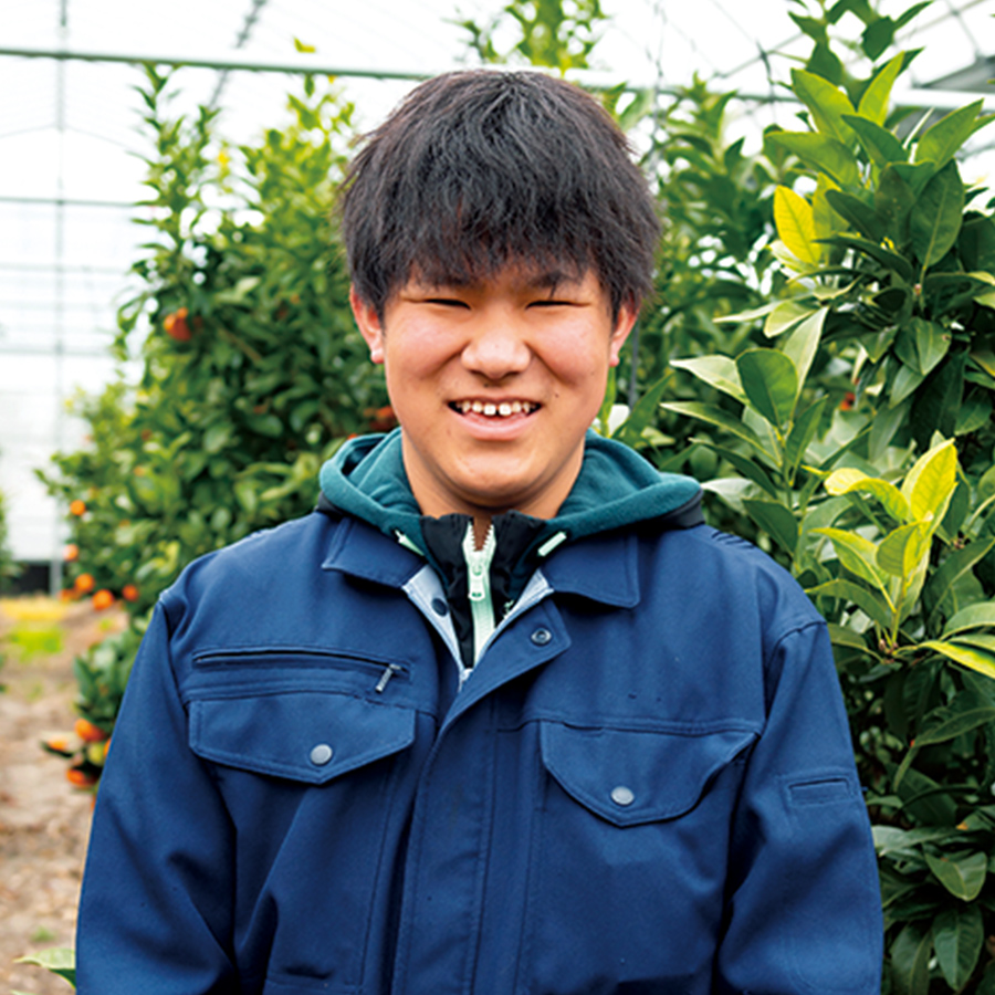「収穫時の大きさは、いよかんより一回り小さい野球ボールくらいが目標です。実を大きくし過ぎると果肉の粒が白濁してしまう『す上がり』や『裂果(れっか)』が起きやすいので、ちょうどいい大きさに揃えるのがポイントです」と話す、佐川さん。葉の枚数が多い方がその木になる実の数を増やせるので、主枝を他の品種よりも少し傾斜させるようにして小枝を増やし、摘果で日が当たる場所に3~4個なるようにします。10月以降は水やりを控えて糖度13度以上を目指します。