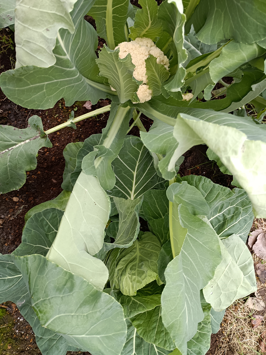 初めてカリフラワーを育ててみました。雨が少なく、うまく育ってくれるか不安でしたが、収穫できました!